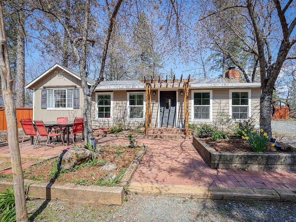Welcome to this beautifully updated farmhouse nestled in the serene mountain community of Meadow Vista. This charming country retreat offers a perfect blend of modern amenities and rustic charm, making it the ideal place to escape the hustle and bustle of city life. Featuring an open floor plan overlooking the snowcapped Sierras through the large picture window at the rear of the home. There are two rooms at the front of the home that could be used as additional bedrooms or home offices, along with an office nook off the dining room. Throughout the home you will find plentiful natural light, luxury vinyl plank flooring, and clean, modern finishes. Access a fenced yard through the laundry room door. Outside you will find 2.4 acres to enjoy. At the front of the property is a small producing orchard, circular driveway, large lawn, and enough room to park an RV. Located next to the detached two car garage is a shelter and fenced pasture for a horse or other livestock. Below the backyard you will find a pad with endless possibilities. Maybe a shop, an ADU, or an arena? If access to more outdoor activities is desired, you can enjoy direct trail access to the Sugar Pine Trail that wraps around Winchester Estates from your front door.