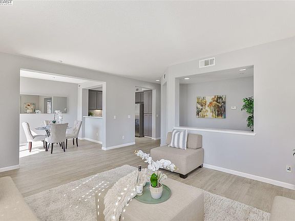 Contemporary and nicely updated corner unit townhome at San Leandro/Oakland border. Newly painted interior. New carpeting on stairs. New laminated floor thruout and all on one level. Updated kitchen with quartz counters, stainless steel appliances, recessed ceiling lights. Spacious and open floorplan. Updated bathrooms with new vanities, quartz counters and fixtures. Master bedroom with walk in closet and master bathroom with double vanities and separate shower enclosure and soaking tub. Laundry hookup in unit. Attached two car side by side garage. Plenty of guest parking. Walk to downtown San Leandro, BART, Shopping, bus stops. Central location. No rental restrictions per HOA but pls verfiy.
