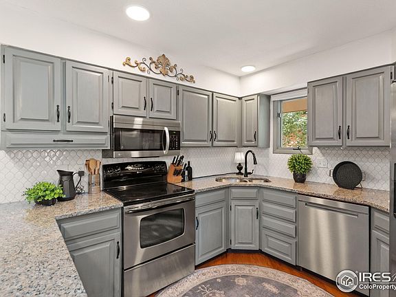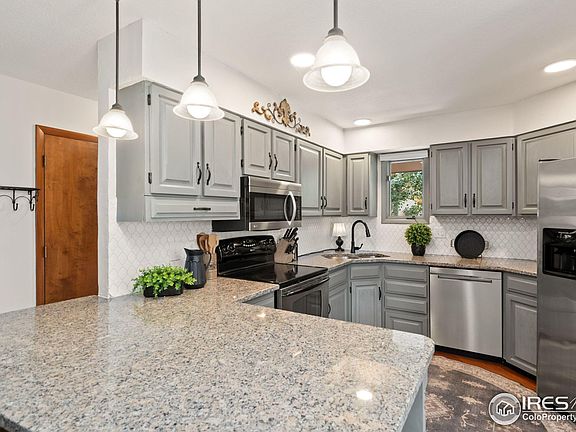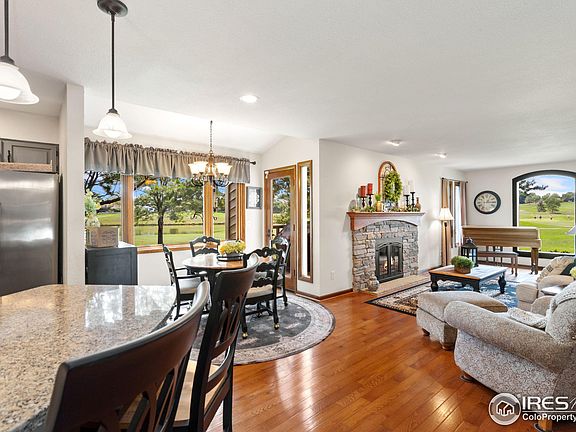 Enjoy this 3 bedroom, 3 bath, end-unit condo with some of the best views in Northern Colorado. Nestled within a quiet neighborhood, surrounded by Cattail Creek Golf Course, this updated home is turn-key and ready for its next owner. Once inside, you're welcomed into the nicely appointed kitchen, with eat-in breakfast bar, stainless steel appliances, tile backsplash and plenty of custom storage. It overlooks the sunny dining space, which has southern golf course and lake views. The living room has hardwood flooring, a cozy gas fireplace, patio access and gorgeous western views of the mountains and golf course. There is a main level bedroom, currently used as a TV room, that has extra storage and patio access. A convenient full bath rounds out the main level. Once upstairs, there's a spacious and bright loft, perfect for a hobby room, office, living or exercise space. Guests can enjoy the spacious extra bedroom, with views of the golf course, and a full guest bath. The primary bedroom is large and inviting with incredible southern views, walk in closet and en-suite bath. There is abundant storage in the attached garage and crawlspace. Enjoy summertime with the community pool, amazing sunset views, or watch the 4th of July fireworks from your patio. Schedule a tour today!