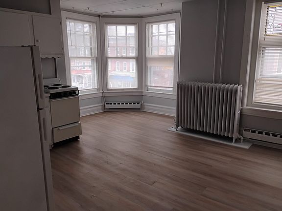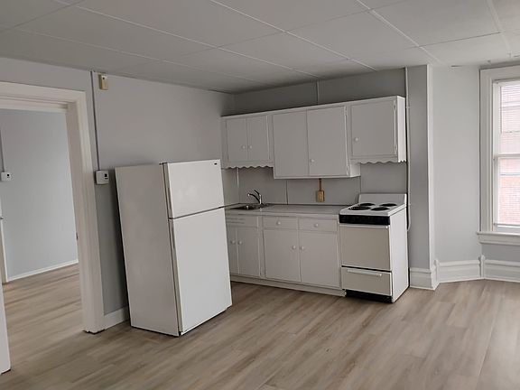 2nd floor, 1 bedroom apartment. Open kitchen/living room area. Bathroom has a stand up shower (no bathtub). Owner pays for gas hot water. Tenants pays electric for heat, lights, stove.
