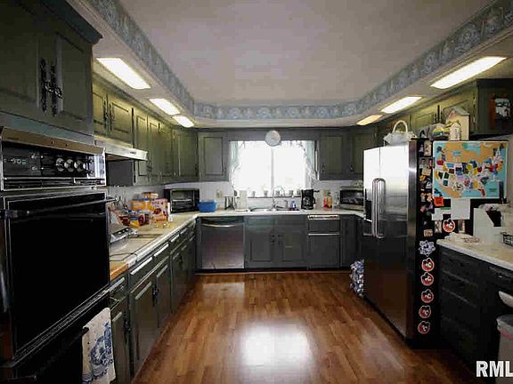 Beautiful country home on the edge of town. Brick ranch home with 4 bedrooms and 3 baths.Spacious rooms, living and dining rooms, family room with fireplace, large eat in kitchen with stainless appliances, office with storage wall, master bedroom with en suite - this home offers plenty of family living spaces. Two heat pumps- zoned. Outside, there are two grain bins and a large pole barn with multiple overhead doors comprised of a workshop which is heated and cooled, an enclosed work area and an open shed, most of which have cement floors. This building is ideal for a farm workshop or storage.The lot around the building has a wonderful gravel base and there's even a loading dock! Must be seen to be appreciated. Range, Refrigerator, Dishwasher, Disposal, Trash Compactor.