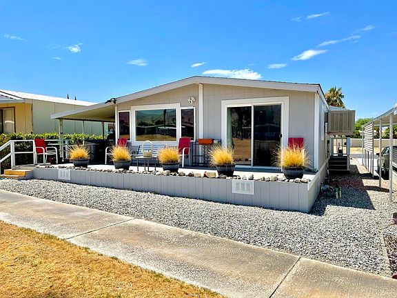 The home you have been waiting for is now available in this 55+ young community! With spectacular views of the mountains and overlooking the 3rd green, you are able to sit in front of the 6' picture window with an unobstructed view to have your morning cup of coffee, enjoy the view of the mountains, and also watch the golfers as they play by here.As you walk through the custom wide entry door, you will notice newly installed vinyl wood plank flooring ushering you into a remodeled vaulted ceiling great room with an adjoining remodeled open kitchen. The kitchen features brand new cabinets, new quartz countertops, LED ceiling lighting, under cabinet LED lighting, and a built-in bar sitting area.Both bathrooms have been remodeled as well, with new flooring and updated ceiling shower heads.Double pane windows, LED lighting, and vinyl wood plank flooring have been installed throughout the home.The home also offers stunning mountain and golf course views all throughout the day.This 2 bedroom 2 bathroom mobile home is waiting for you.