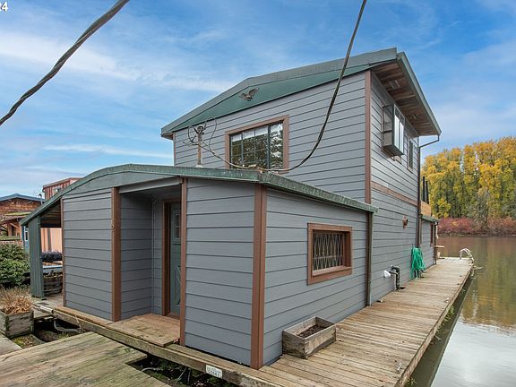 Sauvie Island living at its best. Mayfair Moorage is a small private moorage, gated parking, pet friendly, owner occupied.This floating home is a perfect old style floating home; charming, solid built, metal roof, gorgeous views from built-in window seat, wild life. 2 bathrooms, primary bedroom w ensuite bathroom, deck & river views. Plus, a work shop / tender house on the back side of the dock with storage or studio space, and covered boat well. Brand new fiber cement siding installed in 2023.If you're lucky enough to live on the river, you are lucky enough!