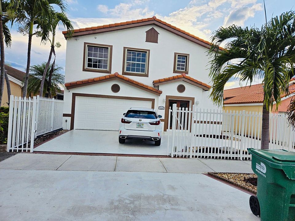 Welcome to your new home. A work at home masterpiece. 4 Bedrooms 2.5 baths along with a two car garage converted into a home office area. This wonderfully updated two story house with an Elegant family room/kitchen space. upgraded cabinets, granite counters, stainless appliances and an open floor plan to entertain. The interior opens to an amazing patio, garden with pavers, tiki bar, fruit tree and intimate privacy. Four bedrooms and two full baths located on the second floor and half bath on the first floor. A truly unique in town rental experience with powered electric gate for privacy and convenience. Located in the heart of Kendall close to Walmart, Costco, Highways , supermarkets and restaurants. Pets Welcome. Home is available for move in 8/1/2024. Very flexible floor plan.