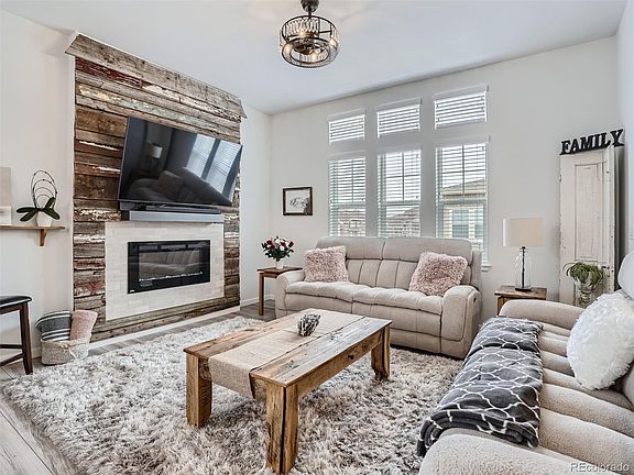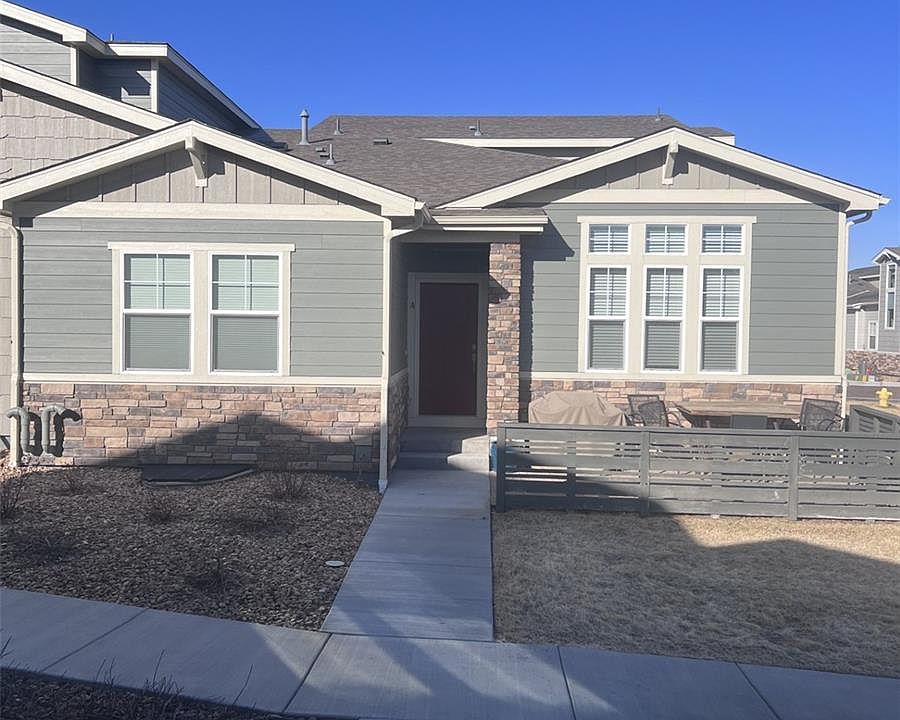 This BEAUTIFUL Rose Hill End Unit offers low maintenance living in a spacious open floor plan. Enjoy the gourmet kitchen with large center island, quartz counters, tile backsplash, stainless steel appliance package with gas range, 42" upper cabinets with crown moulding, and built-in pantry. Easy to entertain open to spacious living room with electric fireplace. Hard to find - two large bedrooms on the main level with two full baths. Main level primary suite with en-suite bath includes dual sinks, quartz counters, stand-alone shower with bench seat, and huge walk-in closet. Convenient main level laundry room with upper open shelving and bonus valet area with built-in bench from garage entry. Flexible upper level loft area is perfect for office, tv room, or play room and is adjacent to another large bedroom with walk-in closet and full bath with soaker tub. Custom wood window sill trim through out home. Full Open Basement to finish as your own. Fenced Patio perfect for the morning coffee and evening bbq's playing corn hole on the lawn adjacent to your patio . Enjoy tucked away, maintenance-free living with all landscaping, irrigation and yard work included in HOA dues! Located centrally in Commerce City, just a short commute to downtown Denver, as well as easy access to Denver International Airport. Just minutes away from shopping, golf, restaurants, parks, walking/bike paths and a host of other activities. Still smells new!