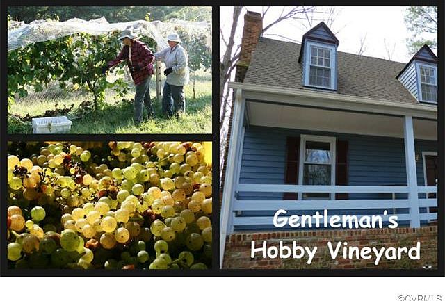 Do you want to dabble in perfecting you own label wine while exploring the horizons of exclusive production of grape varietals? Nestled in the heart of Midlothian is your dream. 4 acres of natural setting with mature vines. Chardonnay, Vidal Blanc, Merlot and Cabernet Sauvignon grapes will give you the perfect start. A hobbyist dream to make your own wine where you live! Close to excellent schools, shopping, dining and much more. This 4 bedroom home has hardwood floors, 4 woodburning fireplaces, all appliances include: induction range top, double ovens, front loading washer/dryer, central vac AND a home generator too! Expansive rooms, brick porches, screened porch. Each bedroom has its own ensuite! Outbuildings have electricity, water capability and supplies ready for winemaking. Tractor included too.