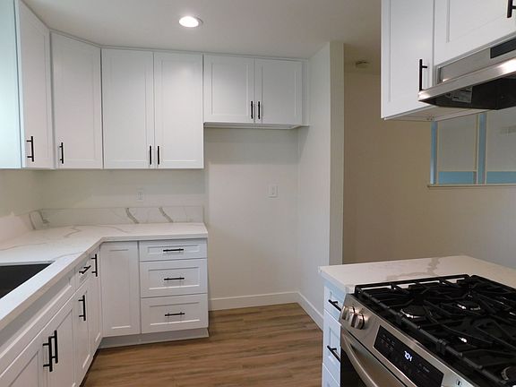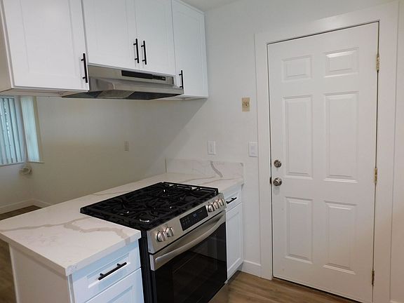 This newly remodeled 4-bedroom 2-bathroom single family home is now for lease. This home has all new flooring incl luxury vinyl tile & carpet. All new blinds on newer vinyl windows. Kitchen equipped with new white shaker cabinets & gray wave countertops, stainless steel gas stove, hood fan & dishwasher. Garage access thru the kitchen. Master bedroom with private remodeled bathroom. Left bedroom has access to backyard. This home sits on the corner lot & has large private backyard with covered patio & fruit trees. **No Pets please** Tenants pay all utilities except gardener.