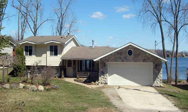 3/4 Bedroom, 1837 Sq. Ft. w/custom Hickory Kitchen Cabinets & Floors, Field Stone 2 Way Fireplace, Skylights in Kithcen, Dining & Living all overlook 80' frontage on Private Pine Lake.