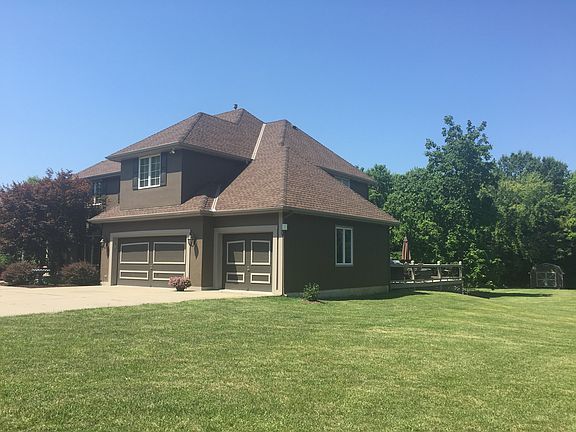 Immaculate home on serene 3Ac wooded property! This home features an inviting entry with curved staircase and vaulted ceiling, living room with natural lighting and 2 sided fireplace with adjoining hearth room. Eat-in kitchen with s/s appliances, granite tops, desk, pantry, intercom system and breakfast room. Master suite with private balcony, walk-in closet, 2 sided fireplace, elegant double vanity, tiled walk-in shower and jetted tub. Finished basement with family room, rec room, wet bar and nonconforming bedroom