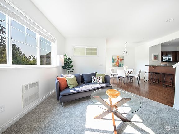 Welcome to this centrally located and move-in ready townhome at Nicho Wynd. This impressive 3 bed / 2.5 bath offers stainless steel appliances, open concept kitchen with dining space, granite counters, fresh carpeting, newer hardwood floors, gas fireplace, sunny upper balcony and a 2 car garage with storage space. Upstairs you will be greeted by a large primary suite with walk-in closets and private bath. Also 2 other spacious bedrooms with shared full bath. Use your imagination downstairs for an office flex space or entertainment center that opens up to a private outdoor patio. Conveniently located within walking distance to the Park & Ride and transit, easy access to I-5 and Alderwood Mall. Welcome Home!
