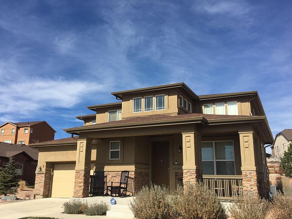 Absolutely gorgeous home for rent in Promontory Pointe. Prepare to be impressed with this 2-story, 4 bedroom, 3 bathroom, 3 car garage home. The main level features an open floor plan with 2 living areas, powder room, dining room, eat in kitchen and access to the garage and rear yard. The kitchen is finished with beautiful granite counters and stainless steel appliances. Upstairs there are 3 secondary bedrooms, bathroom, laundry room plus the master suite. The master suite features a gas fireplace, 5 piece attached bathroom with jetted shower and jetted tub as well as a walk in closet. The air conditioning and heat are controlled by the modern, sleek and energy efficient Nest thermostat. Ring doorbell and ADT installed if tenant chooses to activate. Large unfinished basement allows for plenty of room for storage. All appliances including the washer and dryer are included. Close to schools, restaurants and stores. Located in desirable School District 38 and convenient access to School District 20. Walking distance to multiple parks and less than five minutes to very popular Fox Run Park. Commuting is a breeze as this home is only minutes from the Interstate 25 via Baptist Road. Short or long term lease available. No smoking. Pets considered (may require additional fee). Background check, credit check and references required. Showings begin on 10/30/17. Property available 11/1. Short or long term lease available. No smoking. Pets considered (may require additional fee). Tenant responsible for utilities. Background check, credit check and references required.