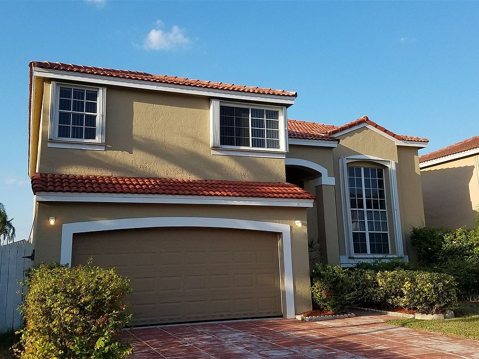 Beautifully renovated 4 bedroom, 3 bathroom single family home with two car garage. Two stories. Located in the sought after Hammocks area with great school zones, restaurants, shopping centers and highway access. Spectacular new kitchen with stainless steel appliances, new cabinets, island and granite counters. Ceramic style tile downstairs, clean carpet upstairs. Renovated bathrooms with granite and updated light fixtures. Updated light fixtures, fans and fresh paint. Lavish master bedroom suite and large closets. Spacious master bathroom with dual sinks, soaking tub and shower. Pets ok. Large fenced backyard with pavers and screened patio, perfect for entertaining. Only first month's rent and security deposit for approved clients! Won't last, contact today! (RLNE3928406)