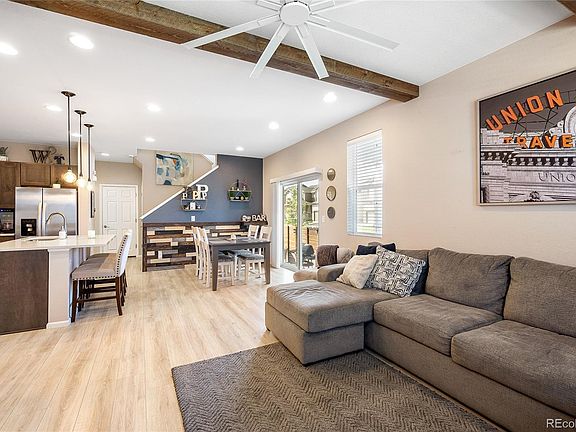 Model home condition! Come see for yourself and submit your offer. This house is not only beautiful inside and out but the amenities that come with it don't leave anything to be desired. Built only 2 years ago, the homeowner had higher end finishes done throughout the house. You will find beautiful Quartz counter tops in the kitchen which includes a large island with plenty of room to gather around and eat at. The master bathroom also includes Quartz with his/her sinks, and both an upgraded tile shower and floor. The upstairs hallway bathroom was also built with a double sink upgrade. The tray ceiling in the master bedroom along with its walk in closets are great bonuses to have in any home. Parking is not an issue with plenty of street parking around this house and its large 2 car garage which is drywalled and its 2 car driveway. The deck/patio area directly off of the dining area is perfect for enjoying the fenced in yard which will be difficult to find with this model house. For larger gathers and hosting(pre and post Covid) there is a picnic area by the Dog park in this community and the clubhouse which is available for a fee. There is also a hot tub, kiddie pool and large pool along with BBQ grills for perfect summer days. Security system will be left installed for buyer to activate if they choose to. East side of the house is accessible to home for breaker panel access but is used by neighbor as patio area. One train ride away from the airport or downtown. This house is located 2 miles from the lightrail station and surrounded by shopping, restaurants and open spaces. search youtube for video walk tour - "15504 E 47th Dr" Text or call the agent with any questions