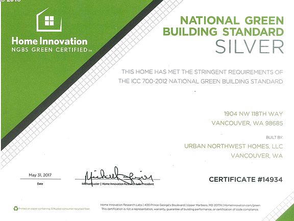 Artists rendering is an example of Builders work. This contemporary home features a great room concept offering a fireplace, AC and quartz or granite kitchen counters which are all standard features plus many more! The Urban Oaks community boasting a 3 acre natural park in the middle of the neighborhood, great for kids and pets. All homes built by Urban Northwest Homes are 3rd party certified to a silver standard or better on the NGBS.