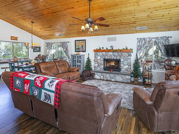 You must see this beautiful turn key mountain cabin with a great single level floor plan which just oozes rustic charm! You will imagine yourself relaxing on the front deck and as you enter the home, immediately feel the warmth of the great room featuring a gorgeous stone fireplace where you can imagine spending cozy evenings keeping warm and toasty or roasting marshmallows. The great room also has soaring vaulted tongue and groove ceilings and plenty of windows to enjoy the mountain views. You will appreciate the brand new beautiful flooring. The open style floorpan allows for interaction with family and guests while preparing meals. The dining area is large enough to accommodate a large table for holiday meals. The master bedroom is spacious with a walk in closet and ensuite bathroom. There is a large second bedroom, a full sized guest bathroom, and indoor laundry hook ups as well. This property includes a spacious deck perfect for entertaining and enjoying mountain views, tasteful landscaping, a large concrete driveway with plenty of room for parking, and a secure storage area to store your golf cart, motorcycle, or off road toys. There is also plenty of under house space for storage or to use as a workshop. The annual HOA fee of $1604 breaks down to $134 per month and includes 24 hour security, pool, tennis, reduced golf fees, clubhouse access, children's park, community garden, road maintenance, snow plowing, summer concerts and BBQ's and so much more!