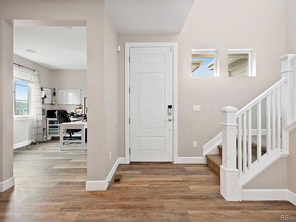 Welcome home! Beautiful nearly new home in Talon View with Finished basement. This home has an open floor plan featuring a Gourmet Kitchen with tile backsplash, apron sink, large island with seating, granite countertops, gas range & stainless steel appliances. The kitchen is open to the spacious living room featuring a cozy fireplace for those cool Colorado evenings as well as an abundance of natural light. Study/office also on main level. Continue upstairs where you will find a generous sized loft, spacious master suite with 5 piece bath, secondary full bathroom & 2 secondary bedrooms. The fully finished basement has an expansive living/rec room, bedroom, full bathroom, kids secret playroom, and wet bar. This area is PERFECT for entertaining guest or spending family night together. Other features of the home are Upstairs laundry, washer & dryer, wood flooring, surround sound & soft close cabinets. Enjoy Beautiful evening sunsets outside in your back yard retreat featuring a built in gas fireplace, covered patio, large concrete patio extended the length of the home and not to forget the oversized 13,424 sqft lot that doesn't have a neighbor behind. The three car garage will fit all your toys. Front and backyard landscaping is complete. Nestled in Family friendly neighborhood with awesome neighbors near open space, and bike/walking paths. Minute away from Todd creek and riverdale golf clubs as well as Thornton amenities including dining, shopping Orchard town center, and premium outlet mall. Convenient access to I-25 and HWY 85. ***Better than new-Skip the wait for new construction***