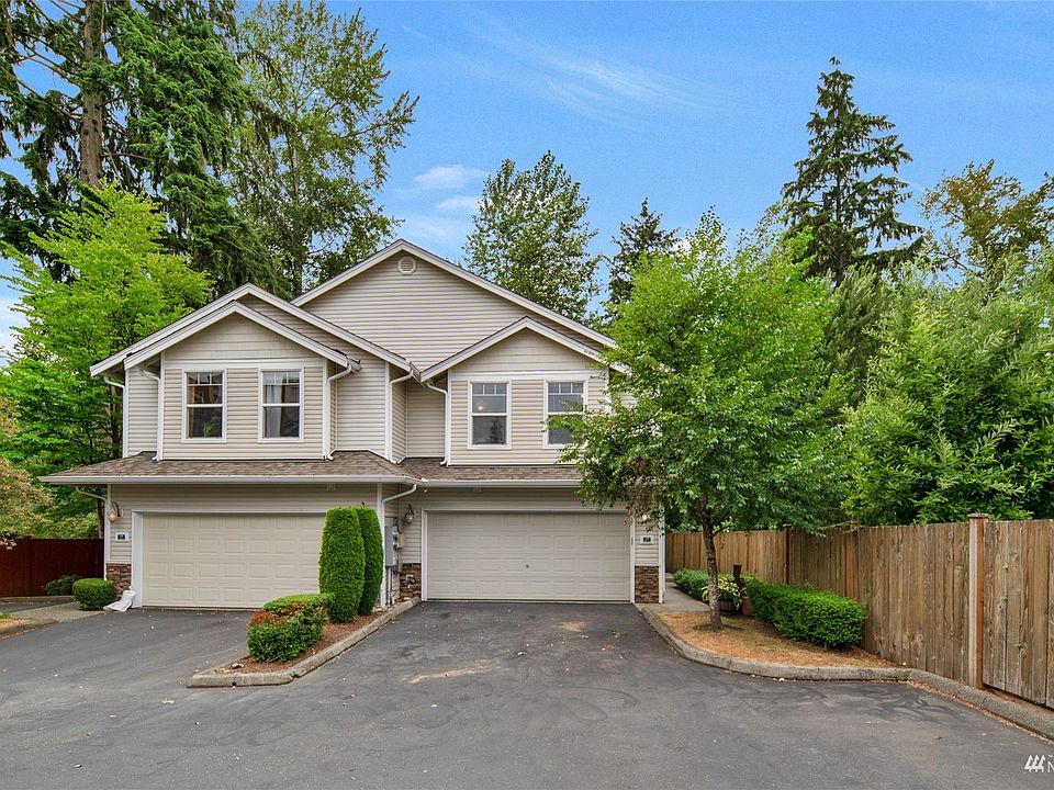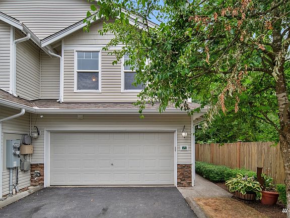 Welcome Home to this stunning end-unit townhome that backs to a greenbelt! Nestled on a quiet street, this gorgeous home is perfect for entertaining & relaxing. The open concept main level features a chef's kitchen w/granite counters, island w/seating & SS appliances. The open floor plan is perfect as your kitchen connects to the dining, living and backyard oasis! Go upstairs to the primary suite that boasts a lrg. private bath & huge walk-in closet! Across the hall, there are 2 beds, full bath & a laundry area w/full size W&Ds. The home is completely move-in ready w/brand NEW paint, NEWER carpet, gas fireplace, 2-car garage, parking pad for 2 more, short distance to trails, bus lines, parks & everything Lynnwood has to offer. A must see!