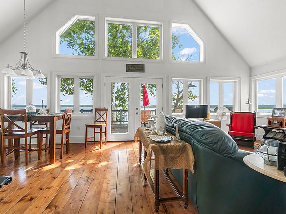 A rare gem! Perfect opportunity to own a vacation home on the banks of the Illinois River! Beautiful sweeping views of the water thru the cathedral glass wall of windows! Home was built in 2009. Main floor set way above flood levels. Huge 32x16 Maintenance full deck to watch the boats & barges! Upper loft bedroom is set up with several beds to host family & friends. Truly a must see property. Great Air BNB.