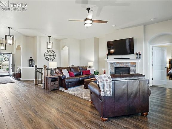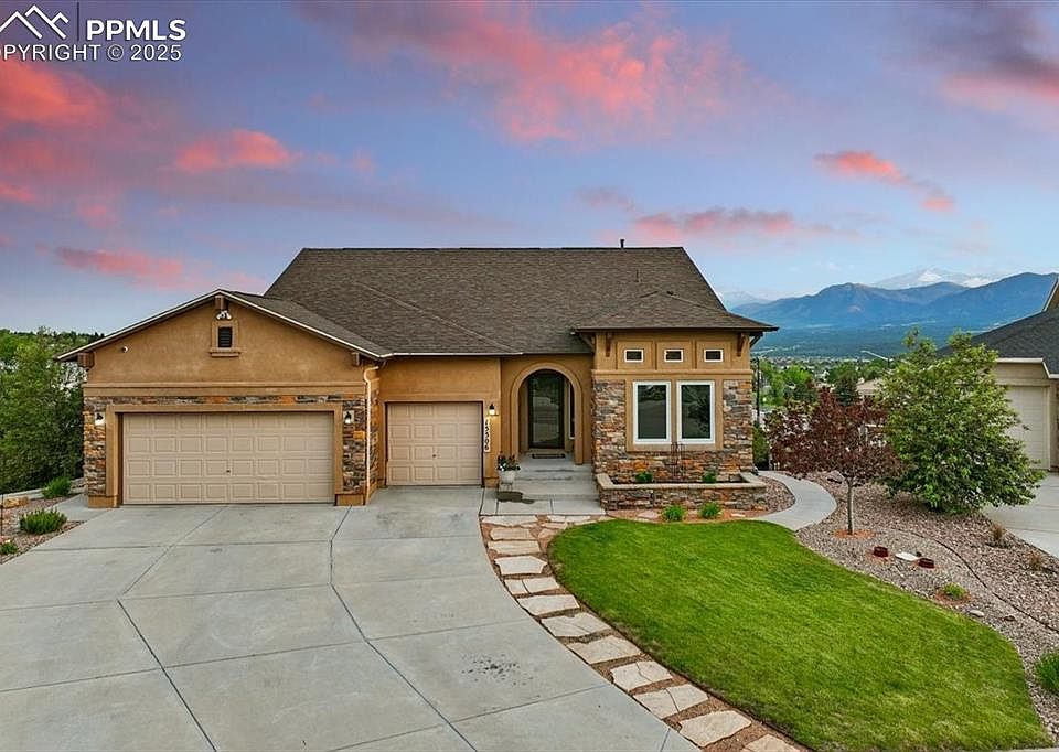 Do you love MOUNTAIN VIEWS?! How about BRAND NEW CARPET just installed! This luxurious Promontory Pointe home has views like no other! Experience the pinnacle of Colorado living in this elegant ranch-style home with a bright, flowing floor plan, breathtaking vistas, and a walkout basement perfect for entertaining. Inside, you’re greeted by rich LVP flooring, soaring ceilings, and abundant natural light that highlights the home’s sophisticated charm. The spacious great room, anchored by a cozy gas fireplace, flows seamlessly into a gourmet kitchen, a chef’s dream with striking granite countertops, a sprawling island with breakfast bar, stainless steel appliances, and butler’s pantry. The adjoining dining area invites intimate dinners or festive gatherings, all set against Colorado’s majestic mountain backdrop. Need to unwind? Retreat to the luxurious main-level master suite, your private sanctuary with panoramic views, a spa-inspired bath, and a generous walk-in closet. A home office or bonus bedroom, a nearby second bath, and a main-level laundry that adjoins the master bath add to the home’s thoughtful design. Entertainment reaches new heights in the walkout basement, boasting an incredible wet bar, sprawling rec room, and more mountain views—perfect for movie nights, game days, or quiet relaxation. Bonus storage space easily doubles as a home gym! Step outside to the covered patio and beautifully landscaped yard, or enjoy the raised deck off the main level—perfect for morning coffee or sunset dinners, all while enjoy incredible Front Range views! Additional features include a 3-car garage, low-maintenance stucco exterior, and full landscaping. Perfectly situated near award-winning District 38 schools, shopping, dining, and with quick access to I-25, this home has it all. Where luxury, comfort, and Colorado’s natural beauty come together—this is the place you’ll want to call home. Welcome to your new beginning in Promontory Pointe!
