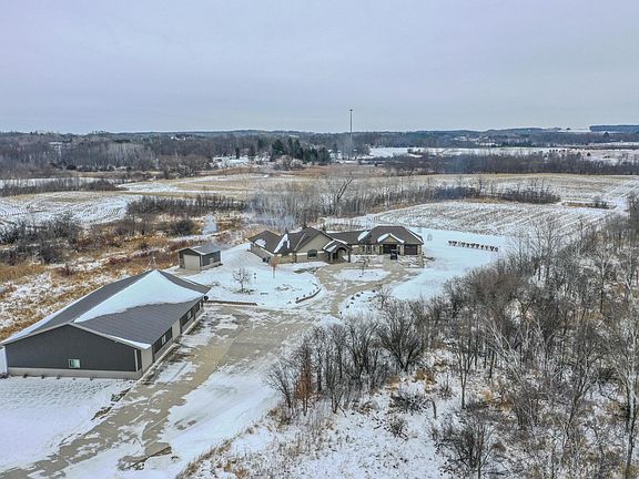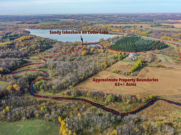 Looking for the ultimate Luxury Property? This property is all inclusive with woods, wetlands, river front, and level sandy beach on Cedar Lake. This home is fully custom with, coved ceilings, ornate stonework, floor to ceiling fireplace, luxurious primary suite with jetted tub, walk-in tile shower & owner's access to the courtyard. The double sided fireplace and grand entrance will start your senses as you stroll through this home's open airy concept. This property is made up of more than 63 +/- acres of seclusion, 1/2 mile river front, deer stands, duck blinds, trails, and lake shore. A 50 x 80 fully finished shop, completes the package, w/full kitchen, bath and laundry. The extensive concrete work and craftsmanship are visible throughout the entire property. Run your business here, board horses, ride trails or cultivate food plots, whatever it may be, this property is versatile and offers all of it, just off a tar road.