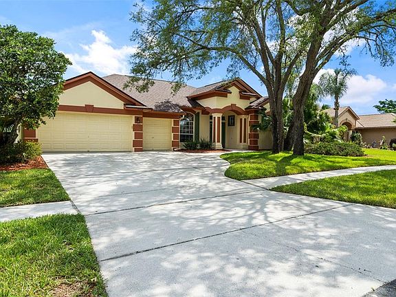 IMMACULATE 3 BEDROOM 3 CAR GARAGE home with screen-enclosed in-ground POOL AND SPA located in Deerfield Estates WITH LOW HOA of just $155 per quarter. This former model home is almost too good to be true. When you pull up, you will immediately notice the curb appeal with mature landscaping, architectural details and a NEW ROOF INSTALLED IN 2021. The 3 car garage and wide driveway offer plenty of parking and the front entry with glass front door and large columns offer a grand entrance. When you enter in the formal living and dining space you have a clear view of the pool and spa through the triple sliding glass doors and will be amazed with the ten foot flat ceilings, recessed lighting, crown molding and architectural details throughout this home. Beyond the formal areas, you will find the open concept kitchen and family room featuring a large kitchen island, built-in features in the family room including an adorable window seat, AND additional sliders to the lanai. The master bedroom suite does not disappoint with plenty of space, your own private entrance to the pool area and a spacious bathroom with garden tub, walk-in shower, double sinks, vanity area, separate water closet AND a huge walk-in closet with tons of storage. Both guest bedrooms are spacious and share a guest bathroom that has lanai access so it doubles as a pool bathroom. Now, for the best part... a HUGE screen enclosed lanai with in-ground HEATED POOL AND SPA that were refinished in 2017. Want to swim laps? Turn on the FAST LANE pool jet to turn your pool into an endless pool giving you a current to swim against that is perfect for exercise. All of this plus an indoor laundry room, larger corner lot and convenient location close to the Sunshine Parkway for a short 45 minute drive to Tampa or head to SR 50 and be in Orlando in an hour and 45 minutes. There are many shopping and dining options located close by PLUS the Brooksville airport is only 5 minutes away and GULF access is just 25 minutes away. The Deerfield community offers a clubhouse, community center and community pool with a low HOA.