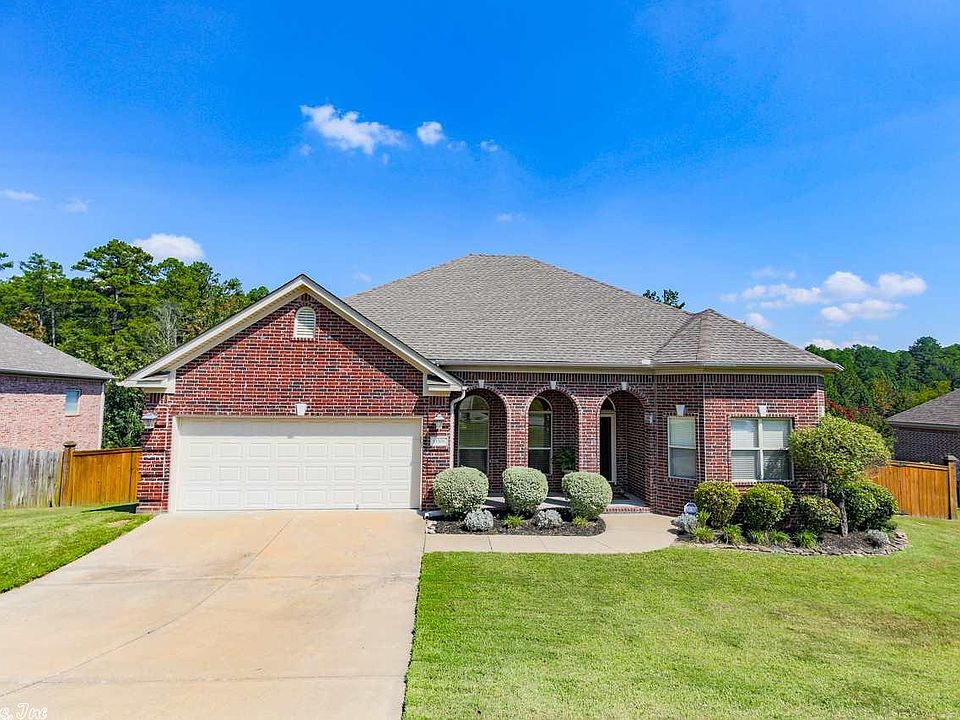 Beautiful one level brick home with 4 BR's. Split BR plan, 4th BR would make a nice office. Formal DR with updated chandelier. Wood floors are in excellent condition. Kitchen has stainless appliances and granite. Family room with a fireplace is open to breakfast area. Large deck overlooking protected green space behind home. Fully fenced backyard, 2 car garage, security system. Fresh interior paint and in perfect condition.