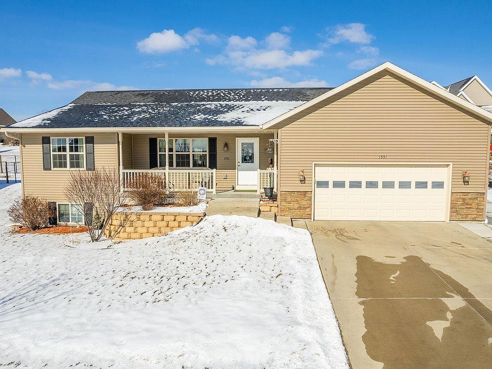 Honey stop the car! This gorgeous 4 bedroom, 3 bath Ranch home is in one of Baraboo's most popular subdivisions. Well-maintained, offering the popular split bedroom floor plan, open concept living room/dining/kitchen area & patio doors to the deck. Updates include new appliances, flooring & fresh paint throughout the main level & Dakota closets systems in laundry & bedroom rooms. Nice laundry room could act as a pantry/mudroom. Finished exposed lower level offers a huge rec room w/gas stove, full bath & bedroom. Enjoy your mornings on the covered front porch or deck overlooking the back yard. Plenty of storage in the basement & 2 car garage. Other features: tile backsplash, a Radon Mitigation System, newer water softener, add'l cabinets in baths, sump pump & extra concrete pad for parking.