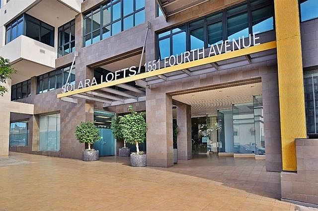 Live in true urban style from this ultra-hip residence atop historic Cortez Hill! Spacious and stylish throughout, this 5th floor, north-facing condo is complete with lustrous wood floors, soaring ceilings, custom paint tones and lighting, sleek finishes, frosted glass doors, in-unit combo LG washer/dryer, and an open kitchen and living space for seamless entertaining! From the large outdoor terrace, expansive city views. 2 parking spaces & storage. The well-appointed kitchen includes stainless-steel appliances & granite counter tops, The master bedroom has awesome sliding doors, so you can make it as private or open as you wish. Both bathrooms are contemporary with custom paint. This condo is the ultimate in swanky downtown living! The supreme amenities at Solara Lofts include a racquetball court, fitness center, and locker rooms with showers and saunas. Owner pays Water & Trash