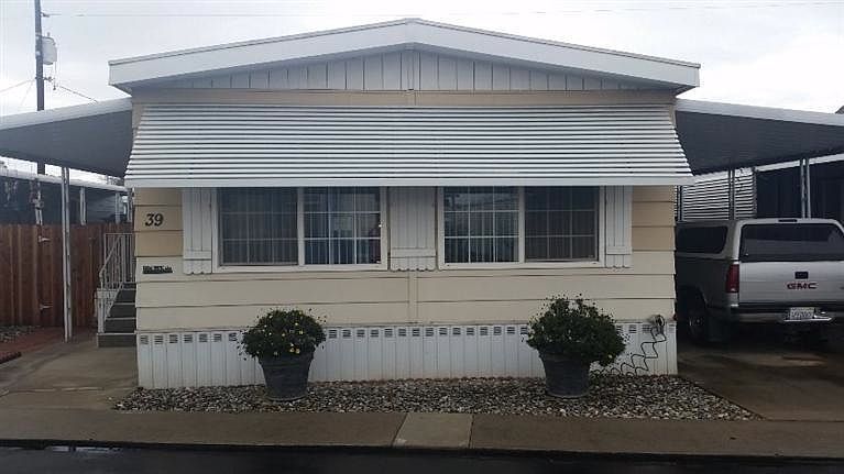 This nice double wide mobile home in one of Kingsburgs most desirable 55+ Mobile Home Parks. 2 BD/2BA with 1140 sq. ft. Pebble tec floors in kitchen and bathrooms, ceiling fans, updated electrical outlets, dual pane windows. New kitchen counters, appliances replace in 2010. New air condition/heating unit in 2013. Roof recoated in 2013. New shed, new fences. Backyard and side yard in pavers for easy upkeep.