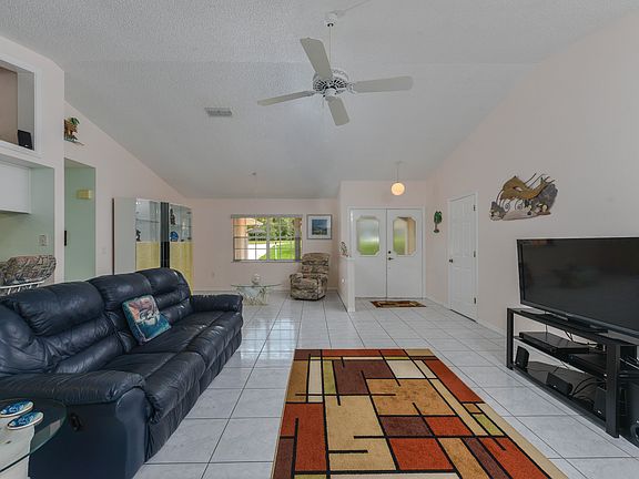 This home is situated on an acre of beautifully landscaped property that has a sprinkler well. Walking into the home you will find a screened in entry way with double front doors leading you into the home. Tile floors flow through the spacious living rooms that is accented by a planter shelf. The kitchen offers a breakfast bar, tray ceilings, a large pantry and plenty of extra cabinet space. The breakfast nook is surrounded by a bay window that lets in natural light to brighten your morning. The two guest bedrooms are a generous size with the guest bathrooms situated outside the hallway in the middle. The master bedroom has its own private bathroom with closet closet space, dual sinks and a walk-in shower. An in-ground pool will cool you down on hot summer days.