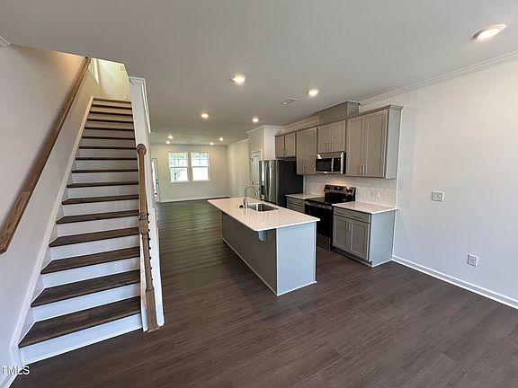 MOVE-IN READY New End Unit townhome with more windows! Discover the new Savannah townhome plan by Lennar at the new Crescent Townes community. Enjoy a centrally located haven in Raleigh with quick access to 440 beltline, WakeMed main campus, downtown Raleigh, and convenient to the greater Raleigh region. 3 bedroom, 3.5 bath townhome with main floor living. 9 ft ceilings on 1st floor. Loft on 3rd floor. Fiber cement siding enhances the exterior of this townhome. With Lennar's Everything's Included features a Kitchen tile backsplash, range, microwave, and Quartz countertops included. Vinyl plank floors on main living areas included. Tile floors included in all bathrooms. Wooded area located beside this townhome offering a beautiful view outside the double windows in the family room.