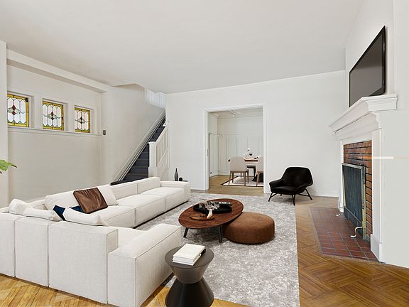 A large and lovely single family home with 5 bedrooms and 2.5 baths on a 30' x 100' lot with a private driveway and a two car garage in a prime Midwood locale awaits you and your vision. Enter to find a huge living room, 24' long, with a fireplace. There is a beautiful coffered dining room, perfect for hosting large dinner parties. The eat-in-kitchen is spacious, with plentiful cabinetry. A half bath is also on this level. The second floor has 3 bedrooms, two of them large enough to be masters, and a full bath. The third floor has one large bedroom, and an additional room that can be turned into a bedroom, that is huge and could also be a great playroom. The basement is finished, and is set up as a huge recreation room, plus there is an additional large windowed room that could be used as an office, or however you desire. There are high ceilings, beautiful parquet floors, and some lovely original details, including gorgeous stained glass windows, coffered dining room ceiling, and wainscotting in the dining room. Located in Midwood, close to the B/Q train lines, near all the shopping and eateries on both Kings Highway and Ave M. Email me for an appointment to view. All Covid guidelines for safe showings will be followed here.