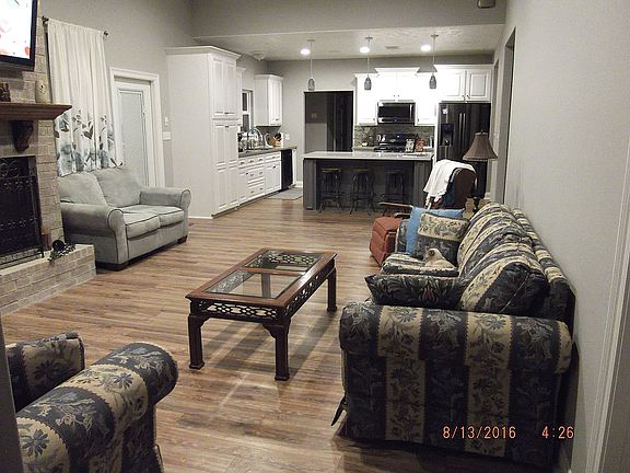 Open concept. No carpet. Indoor gas fireplace in living room. Wood burning fireplace on back porch. Added second kitchen for outdoor get togethers. 22K Generac Generator. Security system with cameras and sound system installed. 825 sq. ft attached 2 car garage and a detached one car garage. Wood privacy fenced back yard.