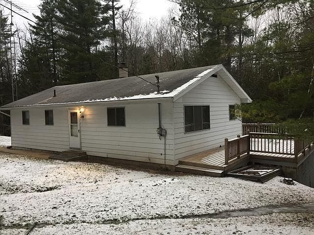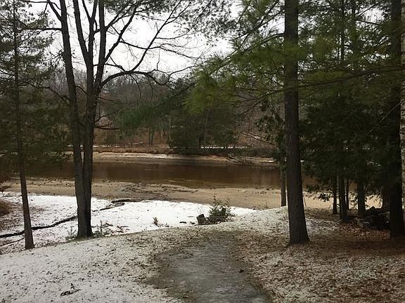86' on All Sports Wixom Lake/Tittabawassee River. Nice 3 bedroom 1 bath ranch with hardwood floors throughout most of the home except the bathroom and kitchen. Walls in living room, kitchen/dining and hallway are knotty pine with drywall in the bedrooms. Nice open kitchen/dining area with an opening to the living room as well. Has full basement that is unfinished. Nice large deck on the water side to enjoy the beautiful views of the River leading to Wixom Lake. There is a little stream on the North side that goes into the lake as well. Also includes a 1.5 car detached garage. Enjoy the waterfront along with over 1,000 acres of state land down the road.