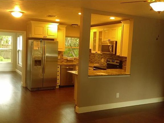 Completely remodeled 3/2 with one car garage, also brand new AC installed, new kitchen, both bathrooms are completely remodeled, freshly painted, new flooring, new stainly steel appliances with granite countertops. Must See.