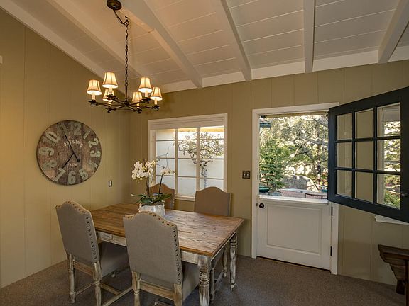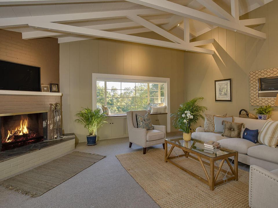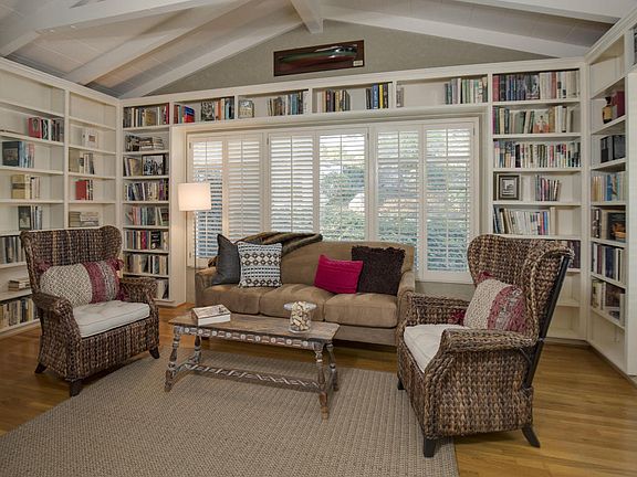Home on the Ranch is the feeling you get with this single level 3bd/2ba home in the Cielito area of Santa Barbara. Sitting on nearly an acre this 2,200 sqft home is surrounded by magnificent cathedral oaks and large sandstone boulders, the spacious back yard is completely fenced with plenty of room for youngsters to play and pets to roam.The homes voluminous living area with vaulted ceiling with cozy fireplace opening to a brick patio is a wonderful place for family gatherings, entertaining, or just relaxing in the shade of those magnificent oaks. The library with custom book shelves is awash with natural light. The high ceilings and attention to detail adds a refined sophistication to this inviting abode. Hardwood flooring provides warmth and character; central heating and air conditioning provide year round comfort. Truly a home for the ages!