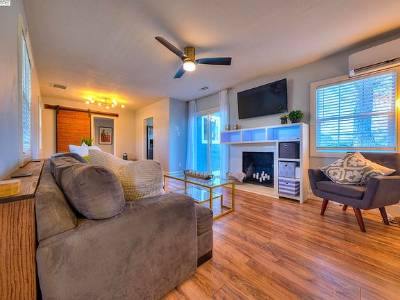 Gorgeous starter home in turn-key condition on oversized lot! Don't miss this stunning 1-story with 2-bedrooms, 1-bath home with upgraded kitchen, bathroom & laundry. Chefs will appreciate the gas stove & new butcher-block kitchen countertops. Also has freshly painted interior & ductless mini-split heating/AC wall-mount units in living room & bedrooms installed in 2021. Items staying with property: TVs in living room & primary bedroom, entertainment center by fireplace, refrigerator & stainless steel table, custom charging station and washer & dryer. Also has convenient inside laundry, new wood deck in rear and converted 1-car garage (Possible 3rd bedroom or family room). Don't delay - Start packing today!