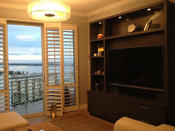 Beautiful views of Intracoastal on ocean! Built in entertainment center in living room. Custom built in bookcase and lighting in bedroom. Completely remodeled bathroom with marble custom flooring, Grohe fixtures. Chandelier in bedroom. Custom walk in closet.