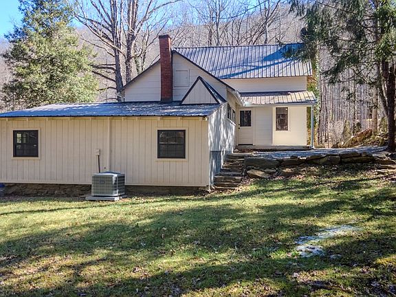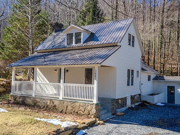 Timeless character meets modern updates in this beautifully renovated 1890s farmhouse cottage. Recent improvements include a brand-new metal roof and a brand new HVAC system, offering comfort and peace of mind. The remodeled eat-in kitchen features new cabinets, granite countertops, brick floors, a farmhouse sink and higher-end appliances, including a 5-burner THOR range, blending classic charm with everyday functionality. A versatile bonus room provides flexible space for a home office, studio, or hobby area. Enjoy the inviting front porch looking toward a rushing creek with multiple small waterfalls, creating a peaceful and scenic backdrop. Tucked into a welcoming neighborhood, this property offers the perfect blend of historic appeal and tranquil outdoor living. Portions of the home were updated by the owner and were not permitted. Laundry gray water currently drains onto the property rather than the septic system. A previous inspection noted evidence of powder post beetles. Buyers encouraged to conduct due diligence and verify all systems. including, HVAC, electrical, plumbing and roof also the firepace need work to be functional.