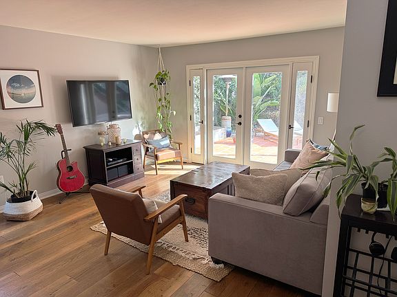 2 bedroom, 1 bath twin home, plus 1 additional 140sq/ft finished room with storage (converted garage) on a quiet, family and dog friendly cul de sac with a private spacious backyard and just a 5 minute drive to the beach in Cardiff, California. Enjoy an expansive 22-acre private dog park and community pool. Updated bathroom and kitchen with new carpet in the bedrooms and wood floors throughout. Enjoy plenty of natural light, with a newly painted exterior, new fences and freshly painted interior before you move-in. Master bedroom has its own vanity and walk-in closet. The one common wall is the garage on this attached home, making it feel like a detached house. Close to elementary, middle and local high school. Near beaches and downtown Encinitas. Washer and dryer included. HOA, Trash and front yard maintenance are also included. Street and single driveway parking. No smoking. Renters insurance required. Owner pays for HOA, water and lawn maintenance. Renter is responsible for gas, electric, water, internet and TV. Up to two small dogs allowed. No cats. No smoking.