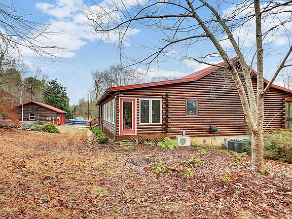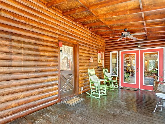 The driveway lined by Leyland cypress trees leads you to a CUSTOM-BUILT LOG HOME on 10 ACRES! 3400+ sq ft features a METAL ROOF, 2 car 24x40 DETACHED GARAGE and a large pole barn for your equipment. The main level offers large living room with a WOODBURNING STOVE and leads to a side porch that is SCREENED! The large kitchen boasts a BREAKFAST BAR WORK ISLAND + room for a large dining table and leads to the GLASSED IN PORCH. The master suite is gigantic, and the laundry room is conveniently located here! Another bathroom on the main level with a claw foot tub. The FULLY FINISHED BASEMENT features 2 bedrooms, 1 bath a LARGE DEN with WOODBURING STOVE + 2ND KITCHEN all with a separate entrance. Most of the doors in the home are reclaimed as is the claw foot tub. The home is on city water & garage on well water. The CORN CRIB not only offers the old-time ambiance + extra storage. The detached garage offers a woodstove and room for a man cave/hobby room, this owner enjoys many hours here. These owners have lovingly planted jonquil, azalea, rhododendron, muscadines, scuppernongs, pear tree, iris + offers a great spot to GARDEN and animals. Be sure to see the KOI POND with WATERFALL! Just a real pleasure to show.