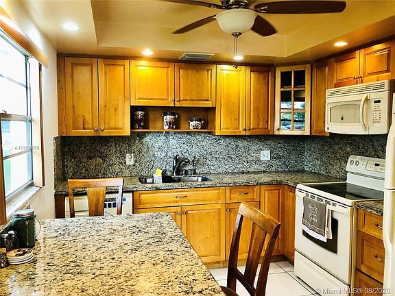 Come and see this corner ground floor 2/2 unit. No elevators to deal with. Tile floors throughout, remodeled eat-in kitchen with granite countertops,dual sinks,and updated cabinets, new a/c, ceiling fans in each room,remodeled bathroom, dining room, walk-in closet. Parking spot in front of unit. Extra storage. Amazing active lifestyle with a lavish million dollar clubhouse endless resort style amenities. Includes outdoor and indoor pools,tennis courts,fitness center,sauna,tennis court,golf course,theater, billiards, pharmacy, cafe,a myriad of social clubs, dances,shuttle buses, places of worship,24 hour security, guard gate entry, and so much more! Lots of shops and restaurants within minutes of the Century Village. Near I-75 and turnpike. What a great place to live. Verified 55+ community