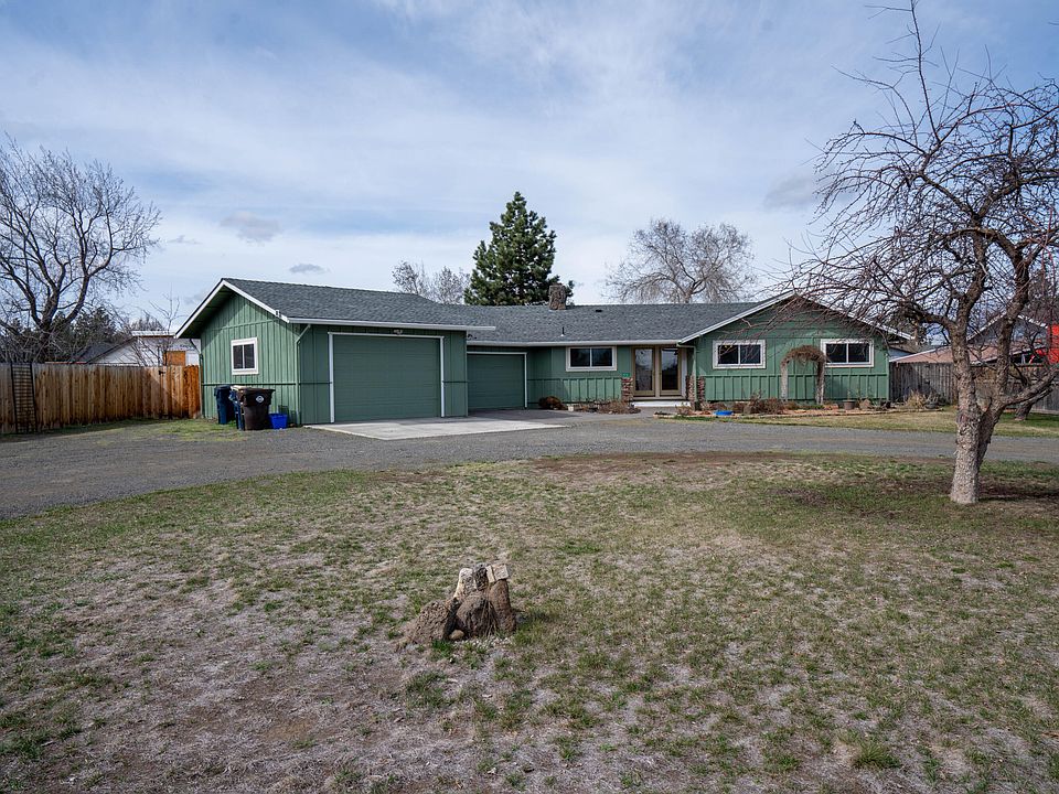 Must see single-story home on huge .39-acre lot with plenty of room for RV + toy parking! This stick-built home has a beautifully updated kitchen with granite counters, a backsplash and stainless steel appliances including a gas cooktop. Hardwood floors in the kitchen, living area and office space, which also has slider doors for easy backyard access. Continuing, the main bathroom has been elegantly updated with a custom tile corner shower as well as tile counters. The gem of this property is the rare, attached triple-car garage with an oversized third bay that has a workshop area plus two man doors for accessibility. The large backyard outdoor space is fenced and consists of a paver patio, mature trees and luscious landscaping. In the front of the home, discover ample front yard space as well as a circle driveway. Home is well-situated, sitting off the road. Solar panels work apx $49 a month for power