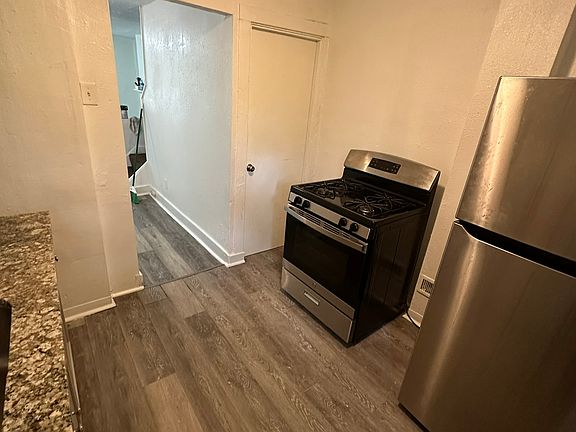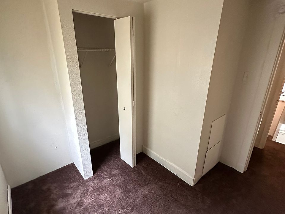 Row house with a front porch. 2 bedrooms and a small room that could be used for a baby or home office. 1 full bathroom. On site washer and dryer. Street parking on a quiet street. Accepting 2 bedroom section 8 vouchers. Renters responsible for utilities. One year lease preferred.