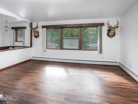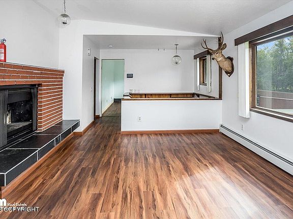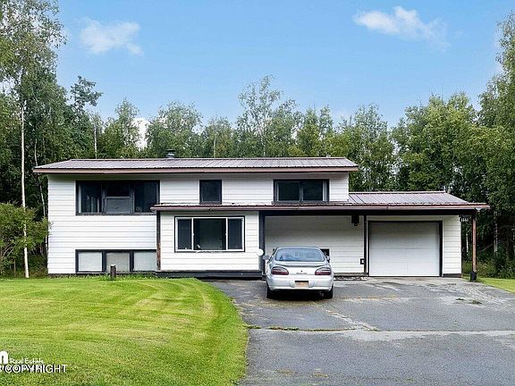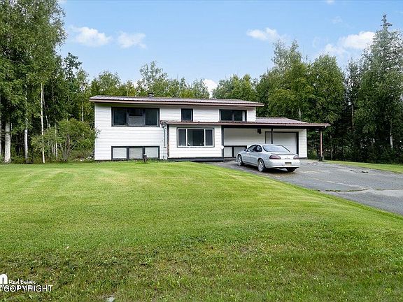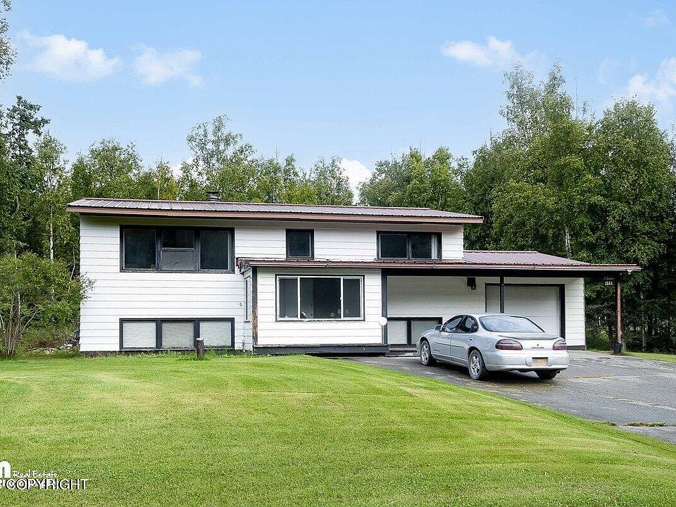 Great Equity Builder! Spacious split level two story home on an acre not far from town. Upstairs features a kitchen, dining area, living area with newer flooring, 2 bedrooms & 1 bathroom. Downstairs features an additional living area, laundry area, & a large primary bedroom w/ an en suite bath. There's plenty of room on this level property to build a shop & for Alaskan toys and/or RV parking