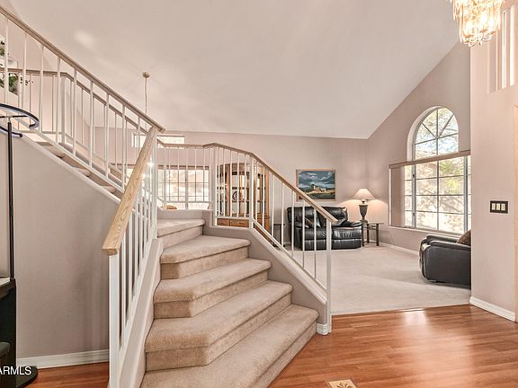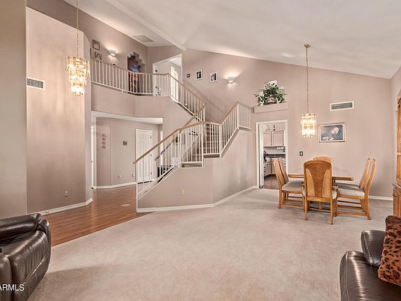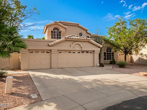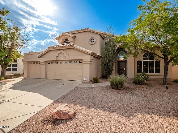 Your dream home is finally here! Start living in this gorgeous 4-bed, 3-bath home with a 3-car garage in Chandler! Discover a fabulous interior showcasing a bright living & dining room, wood-look & carpet flooring, chic light fixtures, and vaulted ceilings. The delightful fireplace in the family room creates a warm and inviting ambiance. SS appliances, granite counters, cabinets w/crown moulding, a breakfast bar, a butcher block island, and a breakfast nook complete this impeccable kitchen. Retreat to the main bedroom, providing double door entry and an ensuite w/dual sinks and a well-sized walk-in closet. This value also includes a basement for additional entertainment or living space. Spacious backyard highlights a covered patio, grass area, shade trees, and a blue pool. Don't wait!