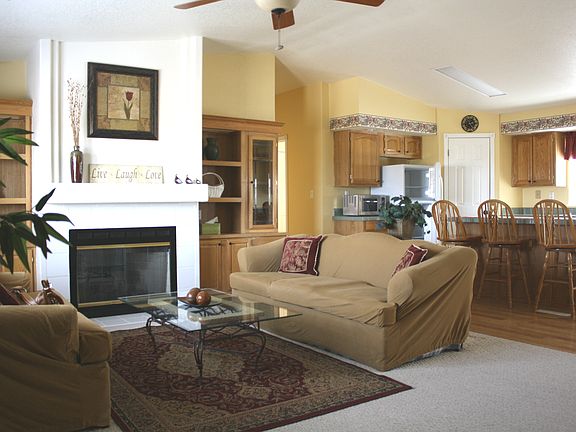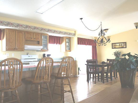 360 degree views from furnished 4 bedroom, 3 bath mfg. home sitting high on 5 acres. Immaculate and spacious, open living space, kitchen with breakfast bar, living, dining, & family rooms. Split bedroom arrangement. Hardwood and carpet flooring. Central heat and A/C. Oversized garage-approximately 650 sq ft. Additional foundation to add living structure or use as giant patio.