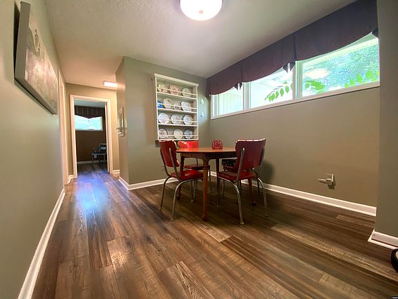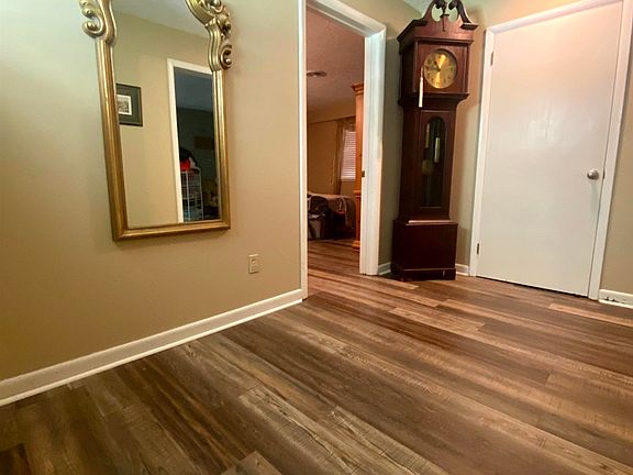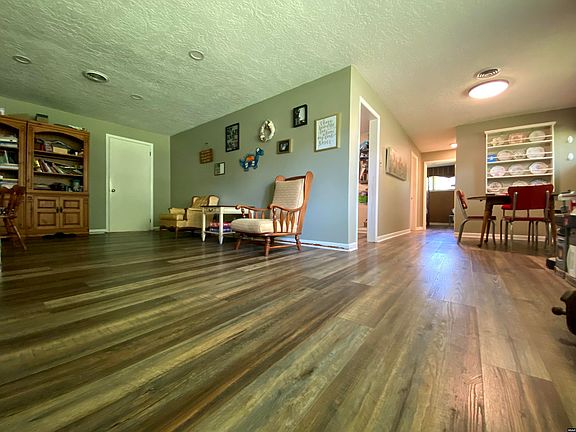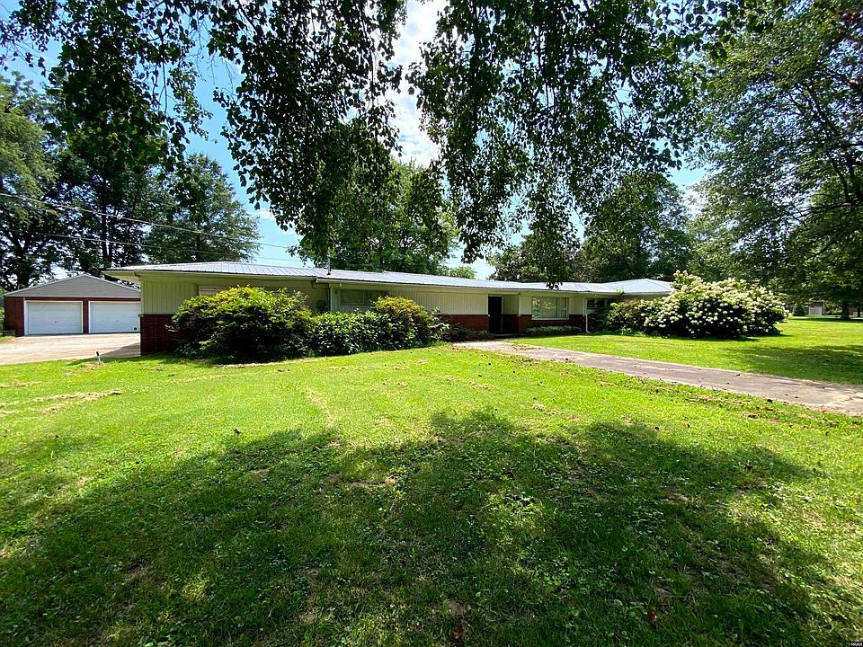One story contemporary on 2.40ac city limits. 3 bdrm 2 bth 2 liv areas w Screen porch. Det 2cg w add Storage/shed(s). Lrg Foyer. Kitch w eat at bar w plenty cabs. Lrg FamRm w door to screened porch and dr to Utility Rm w lots of cabs and counter space including Sink. Split bdrm floor plan w Mstr Suite sitting area w attchd Full bath including Walk in shower w Db vanity and Wlk-in closet. Lrg Secondary bdrms w Cedar lined closets. Hall bath w clst. 40Yr Metal Roof 2019, New Lux flrg 2020,HVAC installed 2022.