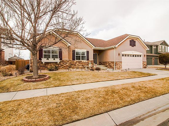 This truly unique, well maintained home located within Indigo Trails in Brighton, is warm and inviting. This ranch style home offers over 2400 sq ft with 3 bedrooms, 3 bathrooms, formal dining room, study, den and an additional 2400+ sq ft in the basement game room/movie room, and more. The home features an open floor plan with newer wood floors, vaulted ceilings, ceiling fans and custom solar screens. Exterior features include a newer roof, stucco/stone exterior finish, 2 back patios with a pergola that is great for entertaining or enjoying sunsets with your mountain views! Kitchen features gas stovetop, dual ovens, newer microwave & dishwasher. Garage has a custom, shelf and storage system. Situated close to HWY 85 and I 76, you will find getting anywhere is a breeze including to the vast number of restaurants and many shoppings areas in and around Brighton. Don't delay as this may not last long!