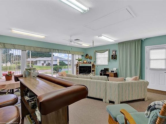 Picturesque home located in the 55+ Community of Willow Gate. This property has alot of charm and is super spacious with 3 bed 2 bath and screened in lanai. The garage was enclosed for finished square footage, but could be converted back to a 2 car garage. Home is being offered furnished (minus some personal property pieces). Well preserved wood laminate flooring through out alot of the living area and kitchen/dining and one bedroom, the other bedrooms have carpet. This community has a low HOA fee of $75 per month and that covers mowing, irrigation, clubhouse and heated pool. Centrally located and convenient to everything. You will love the view out of the back of the home to natural scrub land, makes it pretty private.